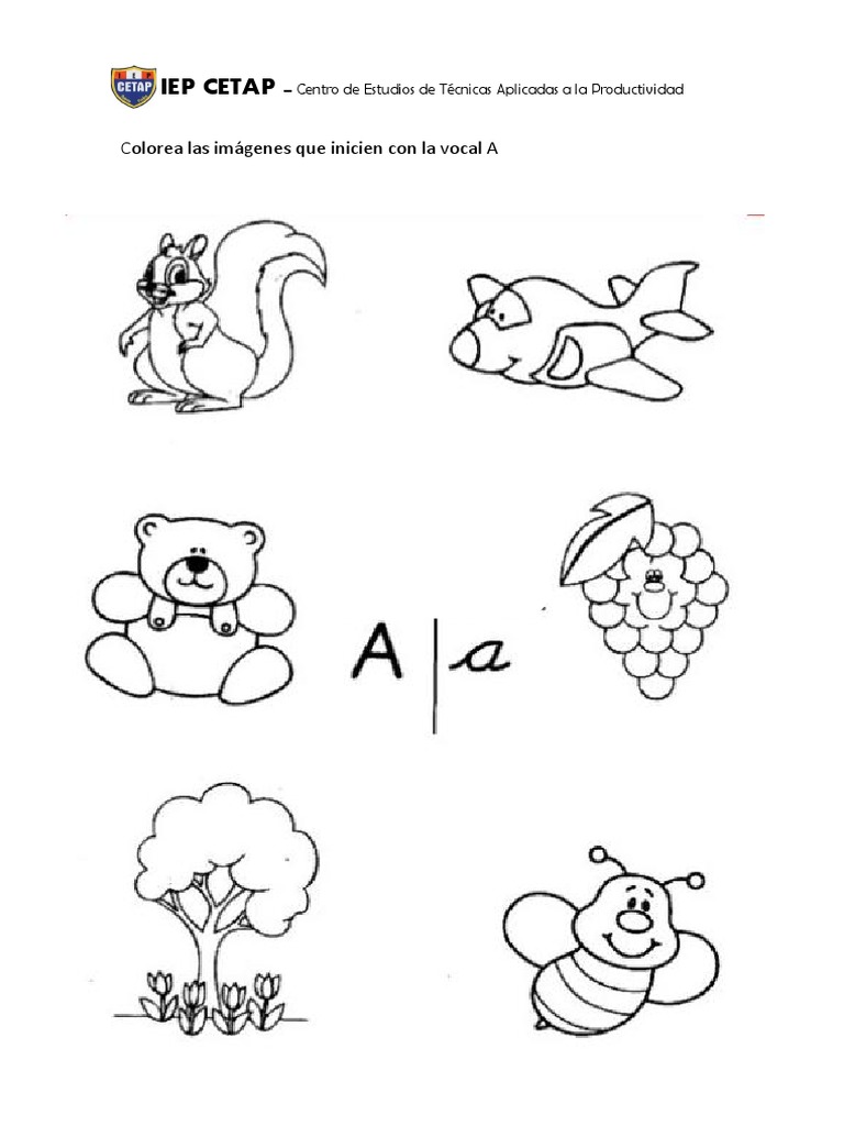 Colorear Dibujos Que Inicien Con Las Vocales | PDF